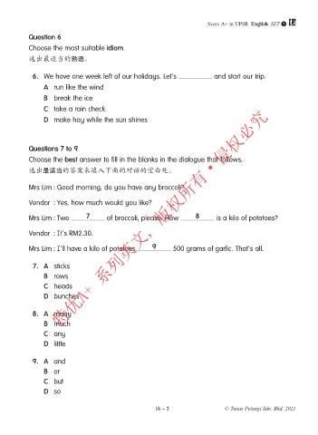 Mrs Lim : I’ll have a kilo of potatoes 9 500 grams of garlic. That’s all.