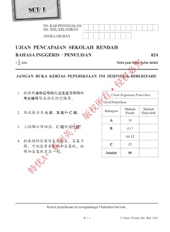2. 本试卷分为 A 组、B 组和 C 组。 Penuh Diperoleh