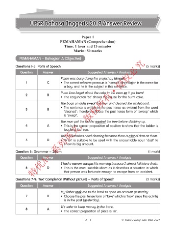 UPSR Bahasa Inggeris 2019 Answer Review
