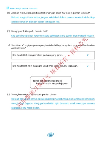 (a) Apakah maksud rangkai kata takbur jangan sekali-kali dalam pantun tersebut?