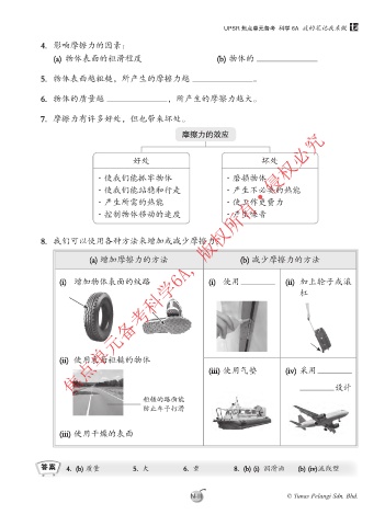 答案 4. (b) 质量 5. 大 6. 重 8. (b) (i) 润滑油 (b) (iv) 流线型