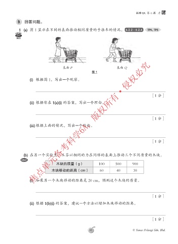 1 (a) 图 1 显示在不同的表面推动相同质量的手推车的情况。 6.2.2 – 6.2.4 TP4, TP5