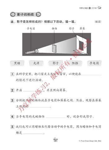 A 影子是怎样形成的?根据以下活动,填一填。 6.1.3