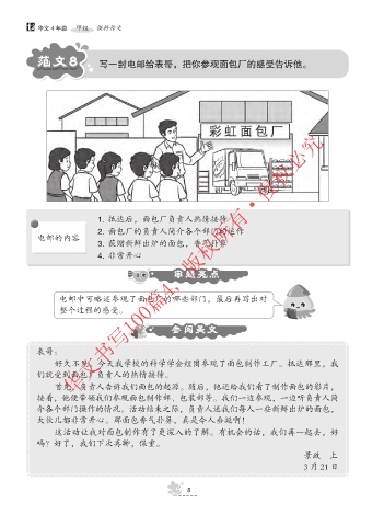 电邮中可略述参观了面包厂的哪些部门,最后再写出对