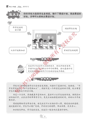 范文2 你的学校为鼓励学生多阅读,推行了晨读计划。简述晨读的