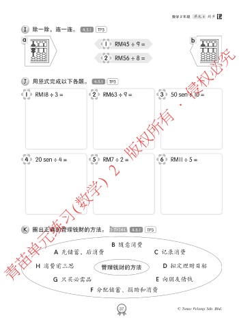 1 RM18 ÷ 3 = 2 RM63 ÷ 9 = 3 50 sen ÷ 10 =