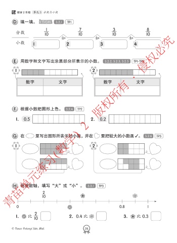 E 用数字和文字写出涂黑部分所表示的小数。 3.2.2, 3.2.3, 3.2.5 TP1-TP2