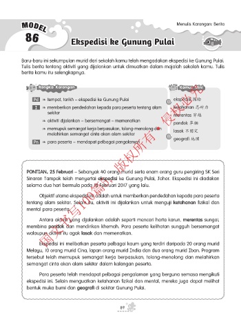 Baru-baru ini sekumpulan murid dari sekolah kamu telah mengadakan ekspedisi ke Gunung Pulai.