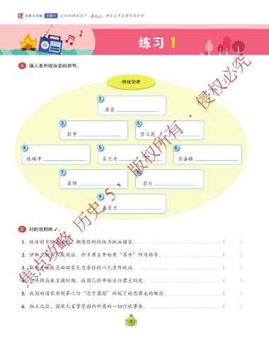 6. 独立之后,国家元首掌管国内州属的一切行政事务。 ......................................................( )