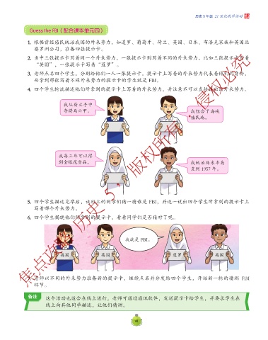 5. 四个学生描述完毕后,让班上的同学们猜一猜谁是 FBI,并逐一说出四个学生所拿到的提示卡上