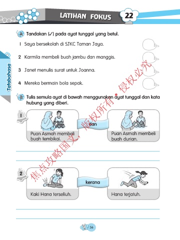 B Tulis semula ayat di bawah menggunakan ayat tunggal dan kata