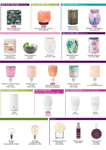 $25 AUD/$27.50 NZD Cord-Concealing Warmer Stands $17 AUD/$18.50 NZD Warmer Stands Light Bulbs Scent Kids (continued)