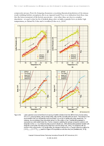 Figure 4-94: Lattice parameter values derived from the d-spacing of hydride reflections from three different sets of planes during