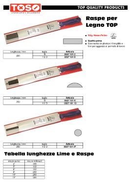 Tabella lunghezze Lime e Raspe