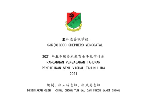 孟加达善牧学校 SJK(C)GOOD SHEPHERD MENGGATAL 2021 年五年级美术教育全年教学计划 RANCANGAN PENGAJARAN TAHUNAN PENDIDIKAN SENI VISUAL TAHUN LIMA 2021 编制:张云昭老师、张凤真老师 DISEDIAKAN OLEH : CIKGU CHONG YUN JAU DAN CIKGU JANET CHONG