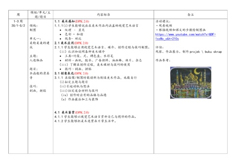 20/1-5/2 领域: 1.1.1(i)学生能够说出在美术作品内涵盖的视觉艺术语言 ·观看视频
