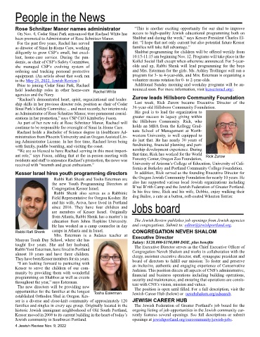 established Orthodox Shul in Oregon. Kes- Jewish Career Hub (below) or nevehshalom.org/edsearch.