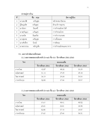 11.1 ผลการทดสอบระดับชาติ (O-net) ชั้น ป.6 ปีการศึกษา 2561-2563