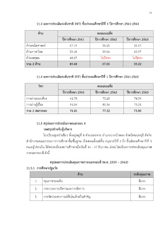 11.3 ผลการประเมินระดับชาติ (NT) ชั้นประถมศึกษาปีท 3 ปีการศึกษา 2561-2563