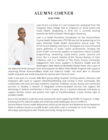 well-being of children and families in Pierce County. She is a lactation advocate and works to