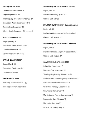 FALL QUARTER 2020 SUMMER QUARTER 2021 First Session