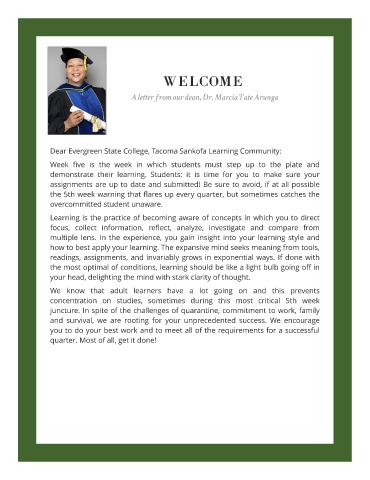 Dear Evergreen State College, Tacoma Sankofa Learning Community: