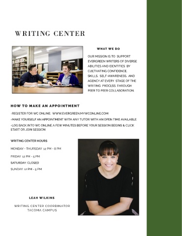 WRI TI NG CENTER As an Evergreen student you will declare your emphasis of study. YOU will customize your learning