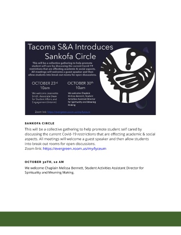 Evergreen community at no cost! Reserve your spot today by emailing We welcome Chaplain Melissa Bennett, Student Activities Assistant Director for