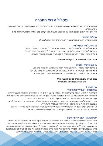 1יחידת לימוד -עבודת חקר בפסיכולוגיה או סוציולוגיה שנעשית במהלך כיתה יב'.