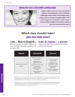 lANGUAGE *Students who enroll in the beginner level ESL course (Essential Skills Beginning A) do not need to take a placement test. More