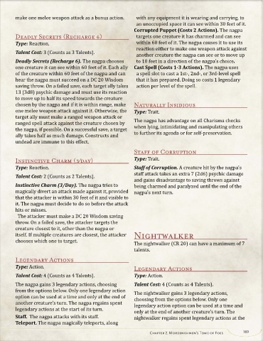 Deadly Secrets (Recharge 6). The nagpa chooses to 10 feet in a direction of the nagpa’s choice.