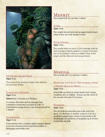 Extended Snake Hair The merfolk (CR 1/8) can have 1 talent.