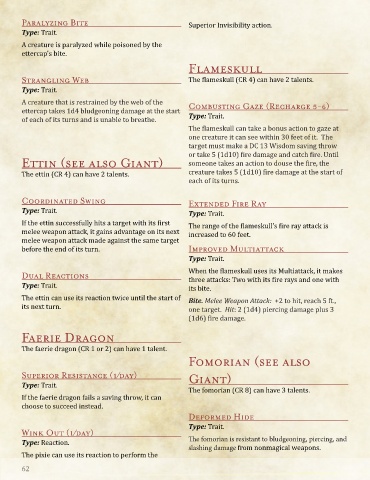Strangling Web The flameskull (CR 4) can have 2 talents.
