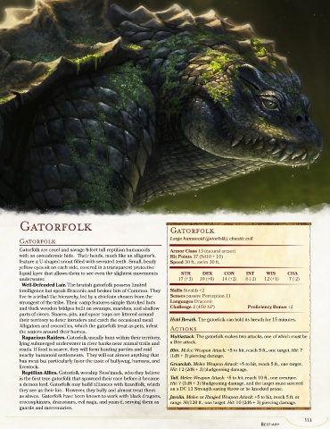 Gatorfolk are cruel and savage 8-feet tall reptilian humanoids Armor Class 13 (natural armor)