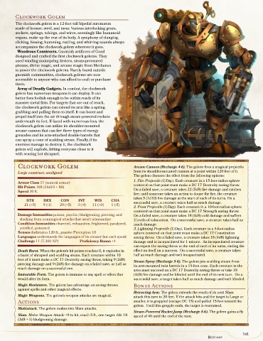 feet of it must make a DC 17 Dexterity saving throw, taking 9 (2d8) Steam Spray (Recharge 5-6). The golem jets scalding steam from