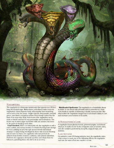 out to each of the five heads - bright crimson, deep purple, emerald what makes the nagahydra dangerous is each head’s ability to cast