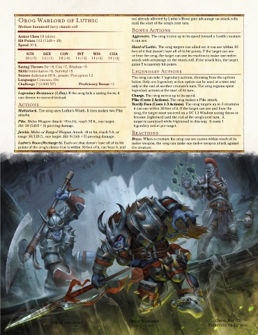 Luthic's Boon (Recharge 6). Each orc that doesn't have all of its hit melee weapon, the orog can make one melee weapon attack against