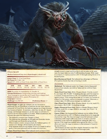 Shapechanger. At night, the halimaw can use its action to one creature. Hit: 9 (1d6 + 6) slashing damage.
