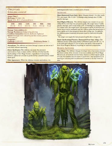 Amorphous. The obliviax can move through a space as narrow as 1 from Steal Magical Memory, requiring no material components.