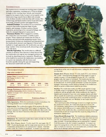 Regeneration. The tendriculos regains 10 hit points at the start 14 Constitution saving throw at the end of that turn or regurgitate