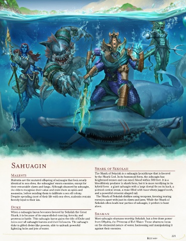 prowess in battle. This sahuagin baron gains the title of Duke and Most sahuagin shamans worship Sekolah, but a few draw power