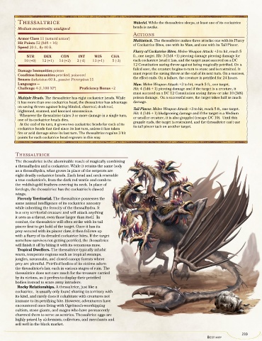 Multiple Heads. The thessaltrice has eight cockatrice heads. While poison damage. On a successful save, the target takes half as much
