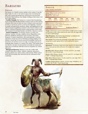 foreheads. Most bariaurs wear simple clothing or hide armor over