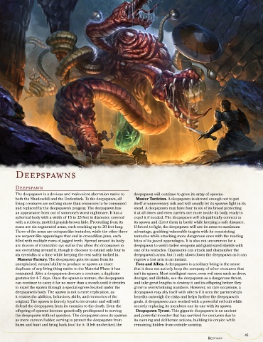 mass are six segmented arms, each reaching up to 20 feet long. If forced to fight, the deepspawn will use its arms to maximum