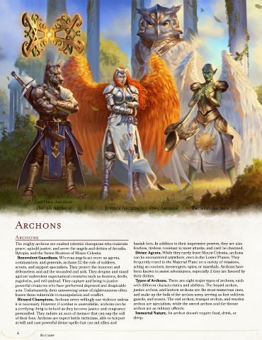scouts, and support specialists. They protect the innocent and acting as couriers, messengers, spies, or marshals. Archons have