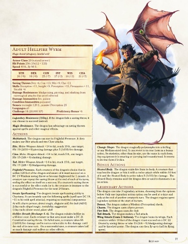Hellfire Breath (Recharge 5–6). The dragon exhales hellfire in Tail Attack. The dragon makes a Tail attack.