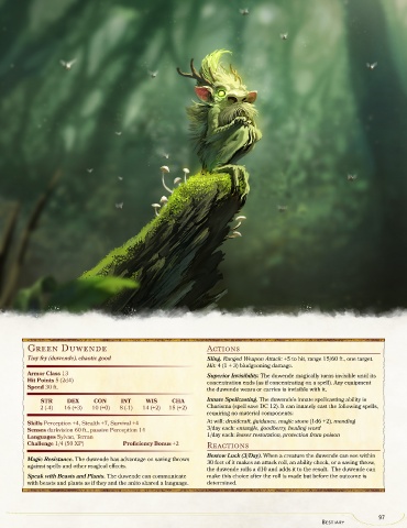 Skills Perception +4, Stealth +7, Survival +4 At will: druidcraft, guidance, magic stone (1d6 +2), mending