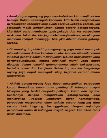 - Amalan gotong-royong juga membolehkan kita menjimatkan