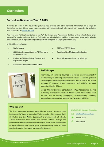 • Staff changes • SCSA and ACARA News