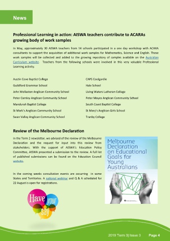 Professional Learning in action: AISWA teachers contribute to ACARAs